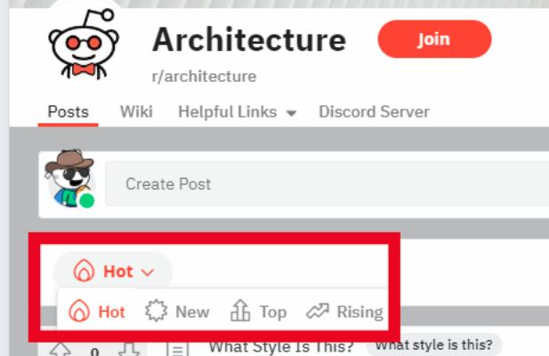 At the top of each subreddit feed, you can use the drop-down menu to sort posts by: